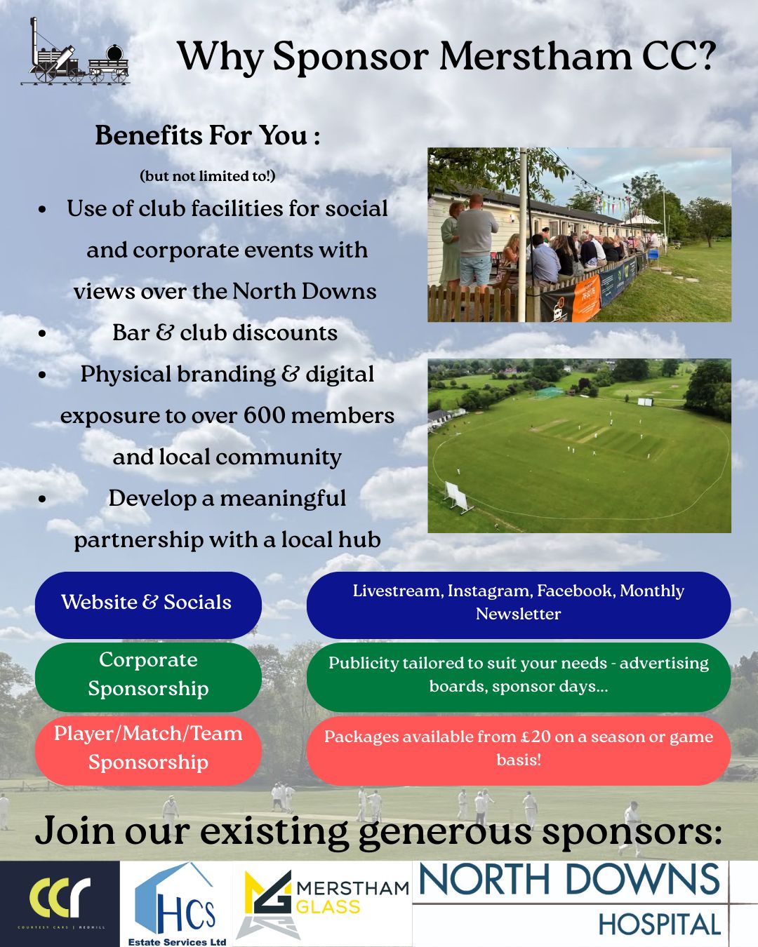 Merstham Cricket Club are seeking new sponsors for 2026!